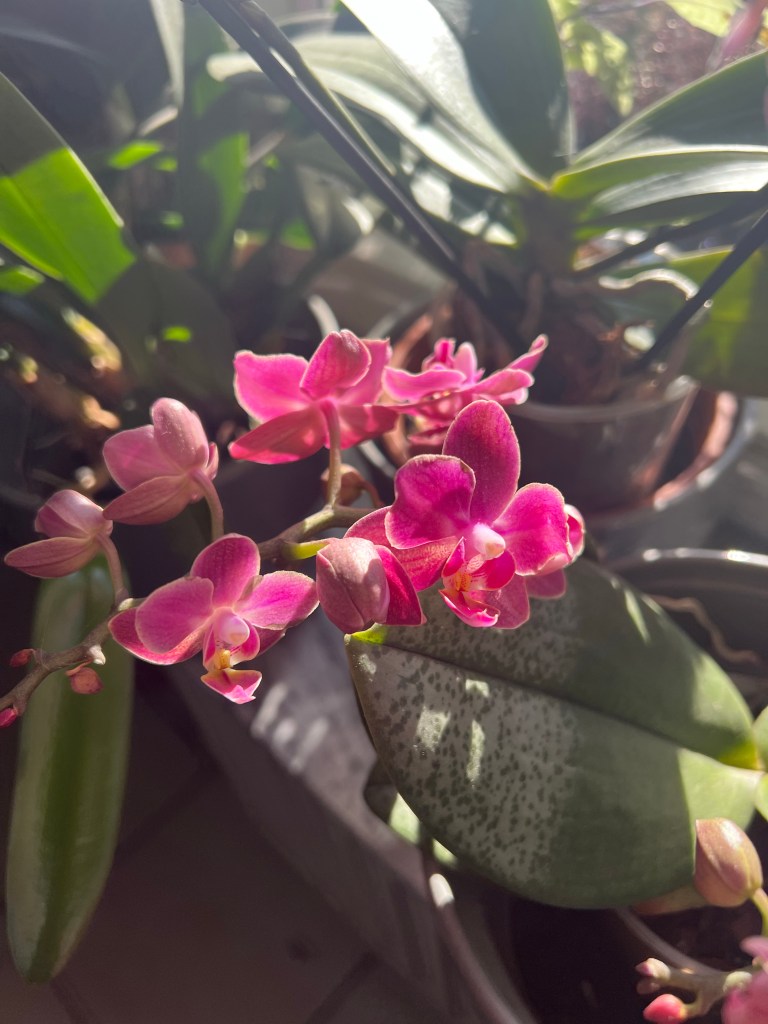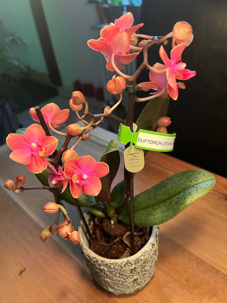 Und so sind mir diesen unscheinbaren Phalaenopsis auch aufgefallen. Ich stand bei Kölle in einem Meer aus Phalaenopsis und meine Nase führte mich dann zu einer Ecke eines Verkaufstisches – und da standen sie: Kleinblühende Phalaenopsis mit eher zarten Rosatönen, gelben und erdigen Rottönen. Ohne ihren Duft hätte ich sie sicher gar nicht bewusst wahrgenommen.