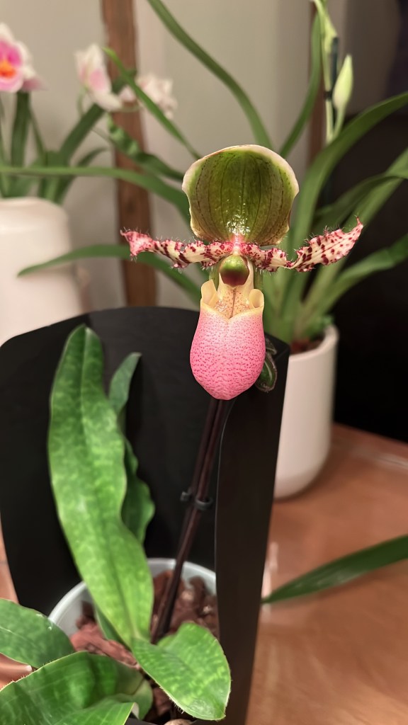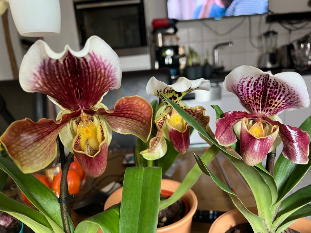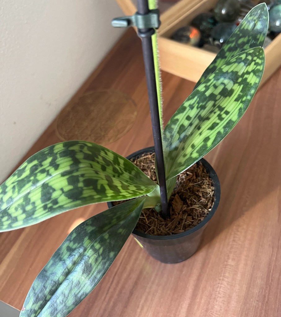 Im Gegensatz zu den üblichen Schmetterlingsorchideen (Phalaenopsis) oder den meisten anderen Orchideen, die wir im Zimmer kultivieren, sind die Angehörigen dieser Gattung echte Erdpflanzen. Sie sind zwar auch in übliche Orchideenerde getopft, aber sie haben andere Wurzeln. Sie treiben auch keine Luftwurzeln, wie die meisten der anderen typischen Zimmerorchideen.