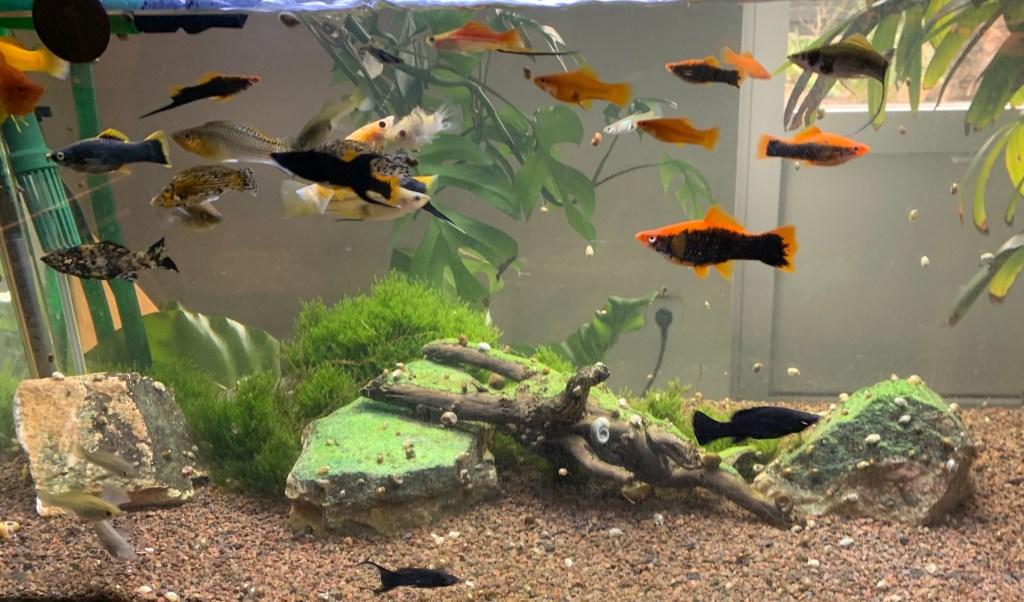 Ich griff hier nicht ein und ich konnte sehen, dass beide Paare tatsächlich lernen mussten, mit ihren Eiern umzugehen. Die ersten verschwanden immer über Nacht. Das waren vermutlich die Welse. Ein Nachtlicht hat dieses Problem gelöst. Mit jedem weiteren Versuch schlüpften immer mehr Jungfische und schafften es bis zum Freischwimmen. Da ich aber die Jungfische nicht groß ziehen wollte, ließ ich sie im Becken und dort „verschwanden“ sie dann immer. Aktuell findet keine Eiablage mehr statt.