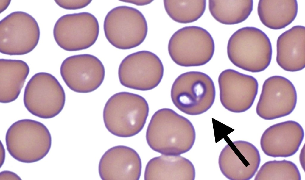 Im Bild sieht man den beginnenden Befall im Blutabstrich. Zum Glück war ich offensichtlich schon früh zur Behandlung gekommen. In späteren Stadien sind deutlich mehr Zellen befallen. Damit war die Diagnose und auch die Behandlung klar. Zum Krankheitsbild gehört aber auch, dass die Blutgerinnung stark herabgesetzt wird und dadurch sekundär die Gefahr von inneren Blutungen besteht. Deshalb empfahl mir die Ärztin, ich solle meinen Hund die nächsten Tage „wie ein rohes Ei“ behandeln. Toben verboten!
