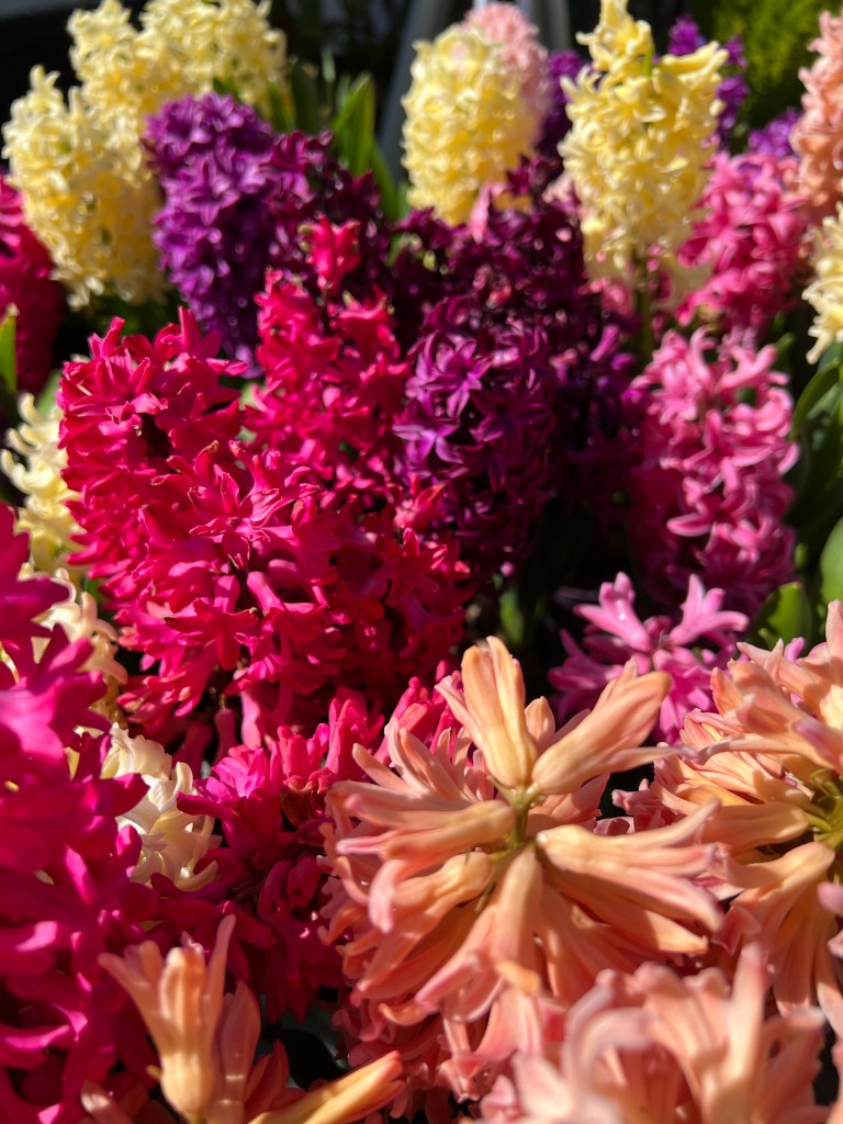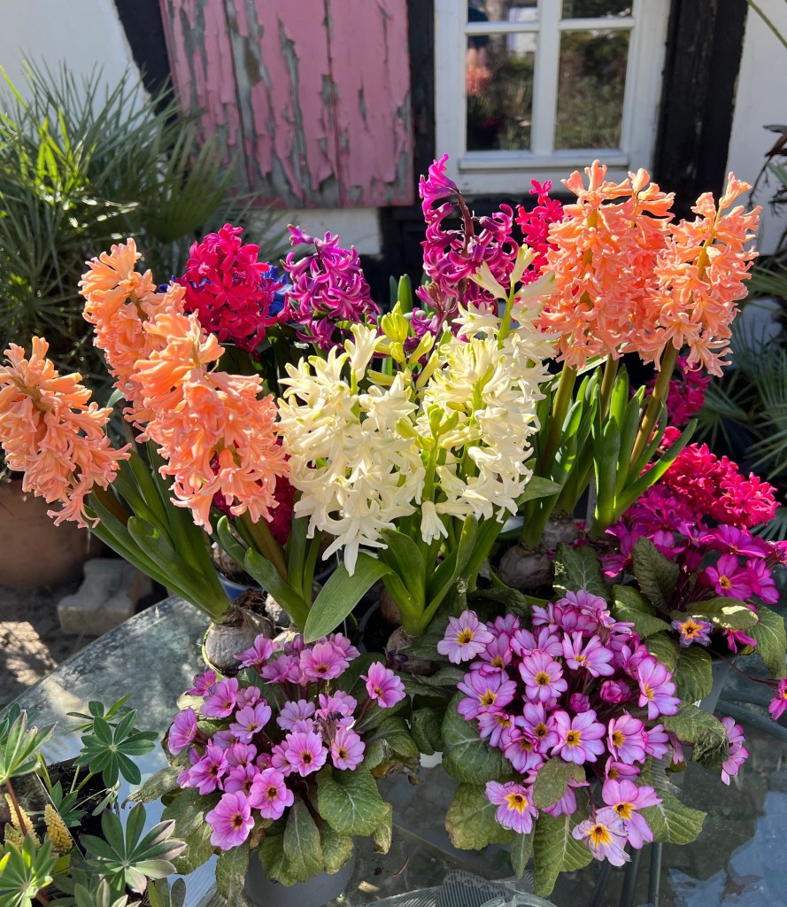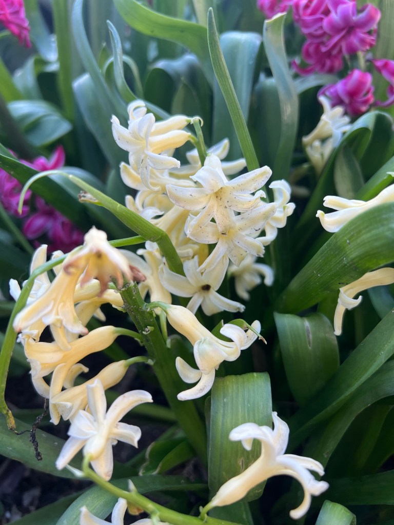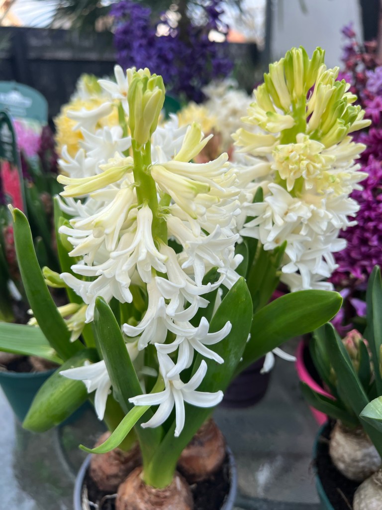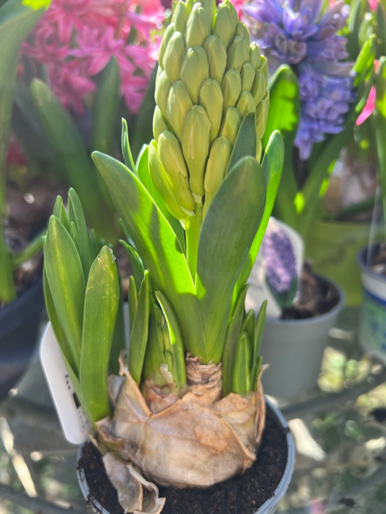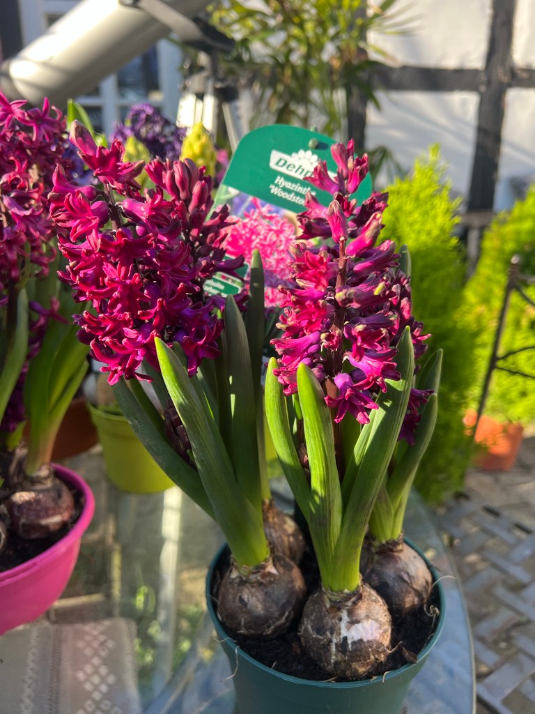 Gegen Ende der Hyazinthensaison findet man in den Gartencentern häufig vielblütige Hyazinthen, die sich mit kleineren Blüten aus einer sich mehrfach geteilten Zwiebel deutlich von den üblichen Hyazinthen unterscheiden. Die Zwiebeln scheinen etwas hinfälliger zu sein, als die Zwiebeln normaler Hyazinthen. Das ist zumindest meine Erfahrung. Aber ihr Auftritt mit den vielen Blüten lohnt einen Versuch immer!