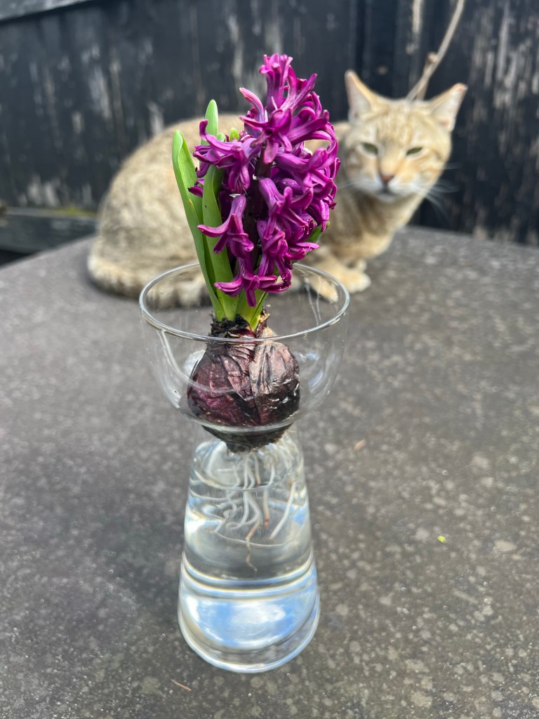 Natürlich kann man im Herbst auch nackte Zwiebeln kaufen und direkt in die Erde oder in Schalen bzw. Kübel setzen und draußen lassen. Die Hyazinthen blühen da dann jetzt zu dieser Zeit auf natürlichem Weg. Leider „verwildert“ diese Art nicht so, wie man das von Schneeglöckchen oder Scilla kennt.