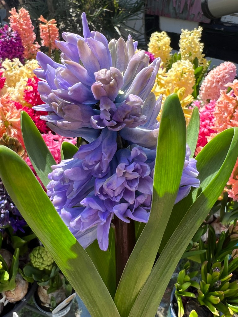 Die purpurnen Hyazinthen sind in ihrer Leuchtkraft schon toll und können so locker mit den Tulpen mithalten.