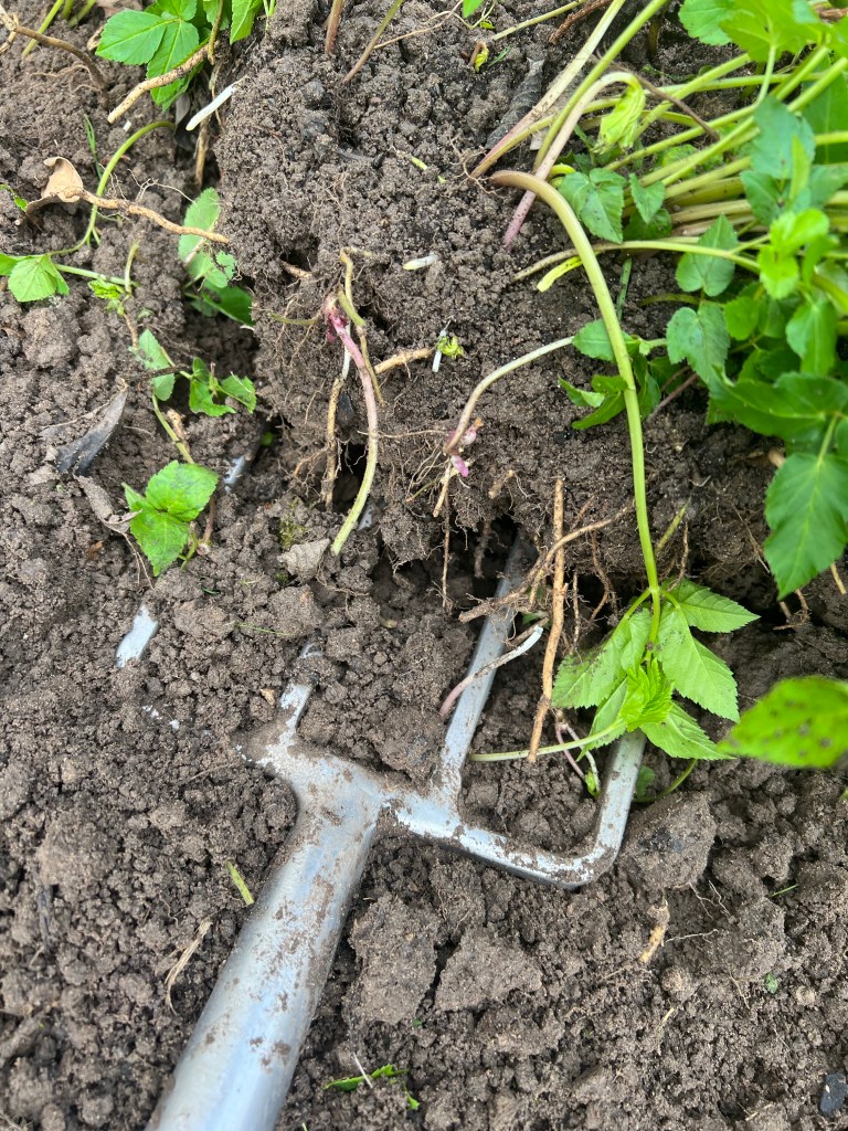 Als Praxistipp kann ich nur raten, macht solche Arbeiten immer im feuchten Boden am besten nach Regen und nicht etwa nach Trockenperioden, denn da wird es wesentlich schwieriger, den Boden so zu lockern, dass man die Wurzelteile nicht abreißt.