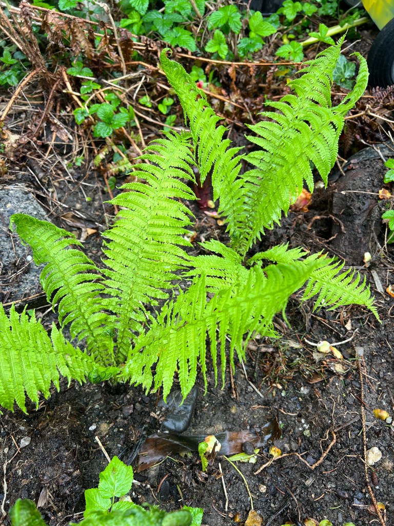 Nahezu unmöglich wird das wie in meinem Fall in Beeten, in denen nicht nur der Giersch sich durch Wurzelausläufer ausbreitet, sondern auch andere Pflanzen, die dort aber erwünscht sind – wie zum Beispiel der Trichterfarn (Matteuccia struthiopteris). Auch er breitet sich über Wurzelausläufer aus. ER sollte das Beet eigentlich zuwuchern. Doch gegen den schnellwachsenden Giersch hat er kaum eine Chance. So wird das dann schon zu einer echten Herausforderung. Auf diese Weise bearbeitet man nun das komplette Beet, in dem man immer wieder mit der Grabgabel die Oberfläche sorgfältig aufhebelt, um so möglichst viel Giersch aus dem Boden zu entfernen, ohne die langen Ausläufer abzutrennen. Es ist auf jeden Fall trotzdem sinnvoll, gezielt nach Wurzelablegern zu suchen und möglichst alle Teile auch zu entfernen.