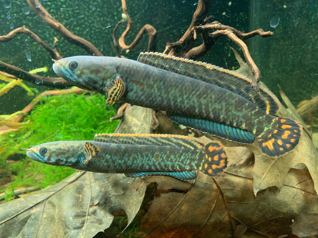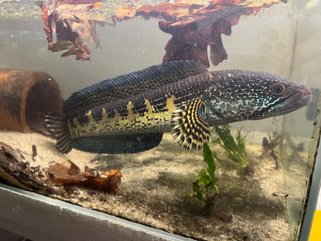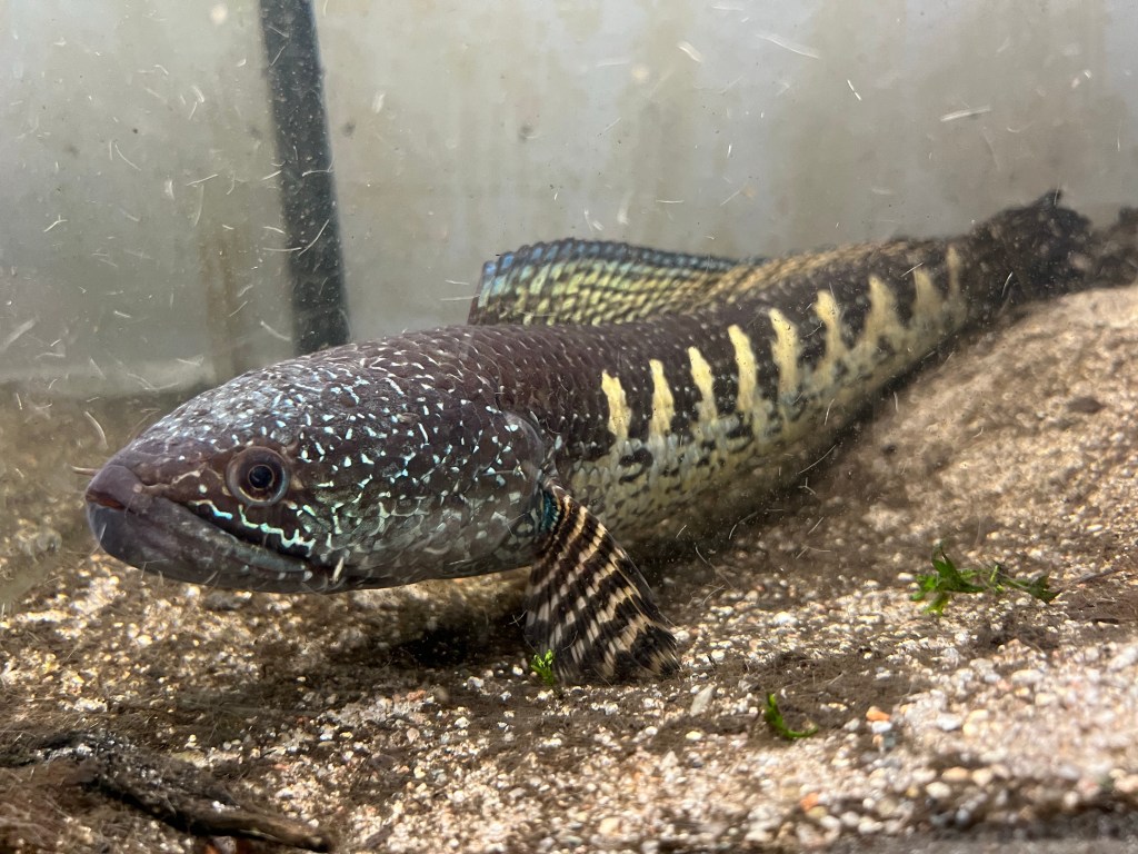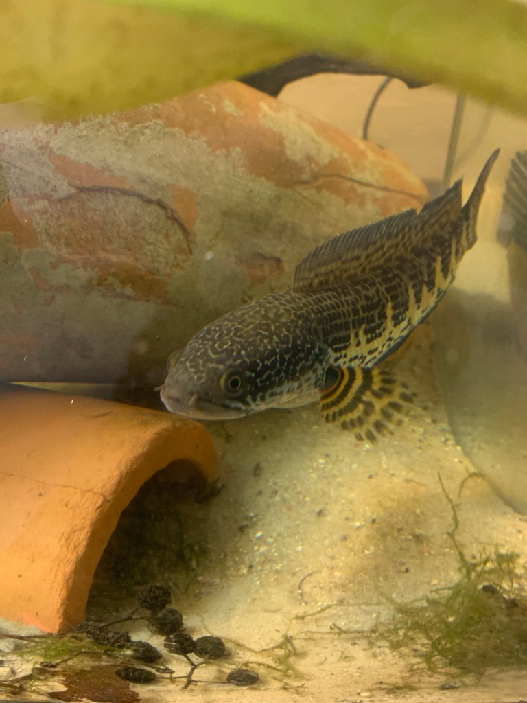 Diese Fische leben in einer Gruppe und machen sehr viel Spaß. Sie verändern im Tageslauf öfter ihre Farbe und wirken dadurch jedes Mal anders. Ihr Sozialverhalten ist sehr spannend – da braucht man kein Netflix mehr. Auch diese Tiere machen bei mir eine Winterruhe durch. Die Ernährung ist ähnlich wie bei Channa aurantimaculata, aber diese Art frisst auch Granulatfutter und Mückenlarven. Selbst Daphnia wird gefressen – trotz des Riesenmauls.