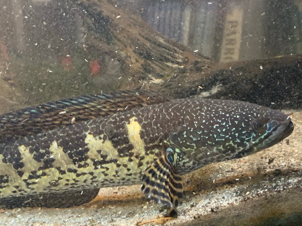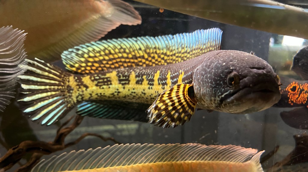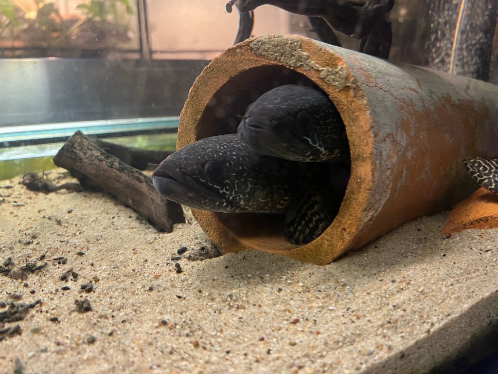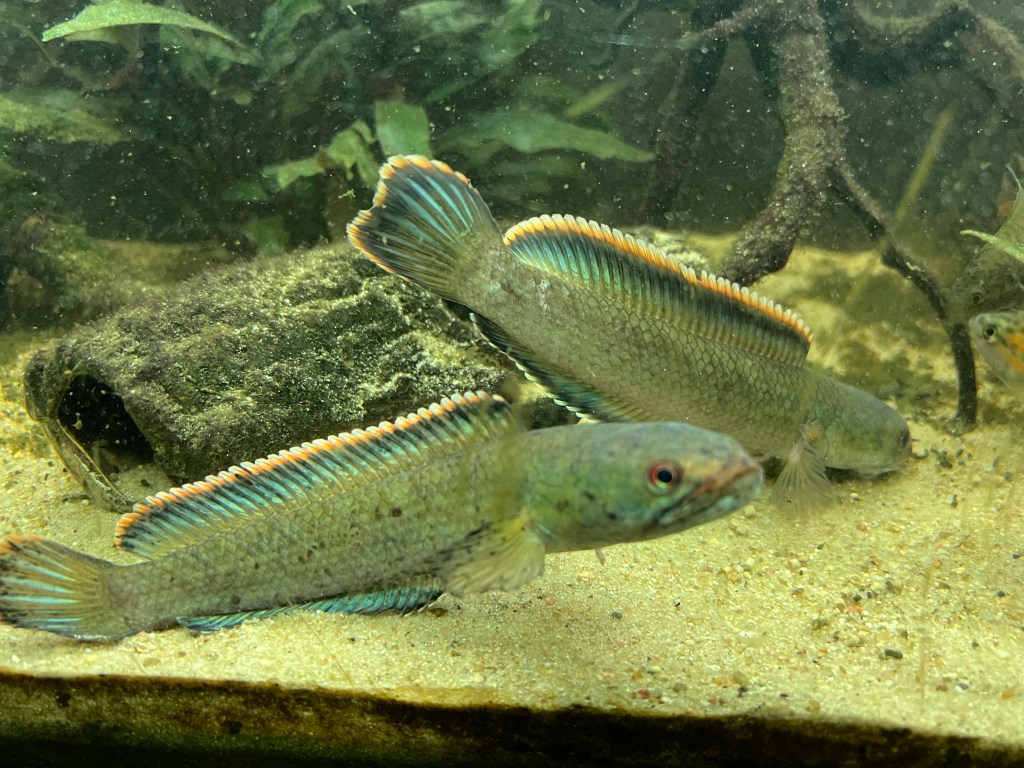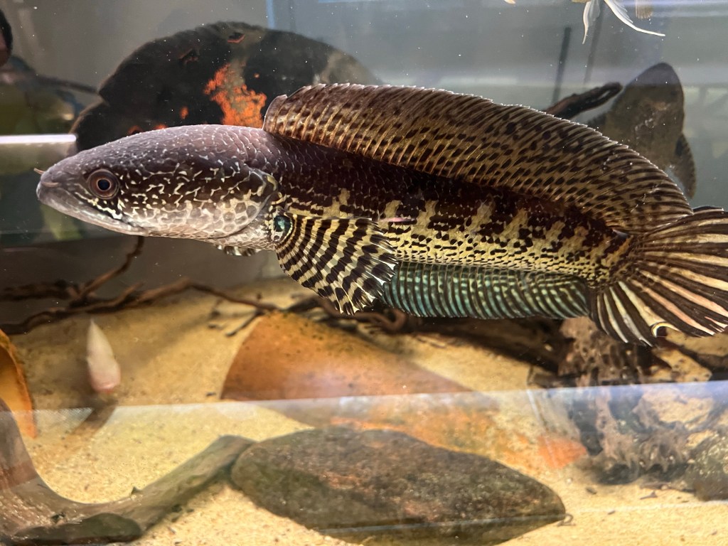 Diese Fische leben in einer Gruppe und machen sehr viel Spaß. Sie verändern im Tageslauf öfter ihre Farbe und wirken dadurch jedes Mal anders. Ihr Sozialverhalten ist sehr spannend – da braucht man kein Netflix mehr. Auch diese Tiere machen bei mir eine Winterruhe durch. Die Ernährung ist ähnlich wie bei Channa aurantimaculata, aber diese Art frisst auch Granulatfutter und Mückenlarven. Selbst Daphnia wird gefressen – trotz des Riesenmauls.