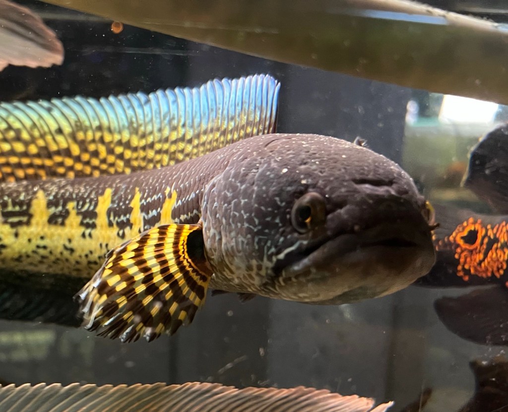 Als ich nach Trebur gezogen bin, hatte ich das Glück, dass es in der Nähe ein großes Zoogeschäft gab, in dem das Fischsortiment deutlich von dem normaler Zoogeschäfte abwich. So fanden sich dort große Raubfische, viele Barsche, aber auch ganz ungewöhnliche Fische, die ich vorher selbst nie in einem Zoogeschäft gesehen habe. Da ich grundsätzlich immer sehr neugierig bin, habe ich mir die Aquarien ganz genau betrachtet und nachdem ich auch mit den Verkäufern ins Gespräch kam, merkten die schnell, dass ich mich auch für diese besonderen Fische interessiere. Eines Tages sprach mich ein Verkäufer an und zeigte mir einen wunderhübschen, großen Fisch, den ich zuvor noch nie gesehen hatte, einen Schlangenkopf. Genauer gesagt, Channa aurantimaculata.