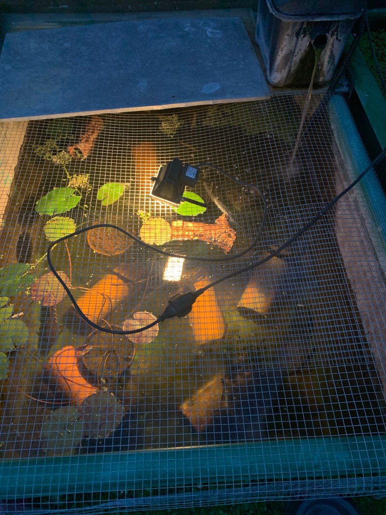 Bitte das Aquarium komplett ausbruchssicher abdecken. Abdeckung gegebenenfalls beschweren!
