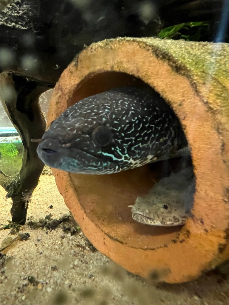 Es hat unheimlich viel Spaß gemacht, diesen Fischen beim Fressen und beim Schwimmen zuzusehen, deren Bewegungen außergewöhnlich schlangenartig für Fische sind. Das Farbenspiel durch den unterschiedlichen Lichteinfall ist ständig anders – das fesselt so sehr, dass man komplett die Zeit vergisst.