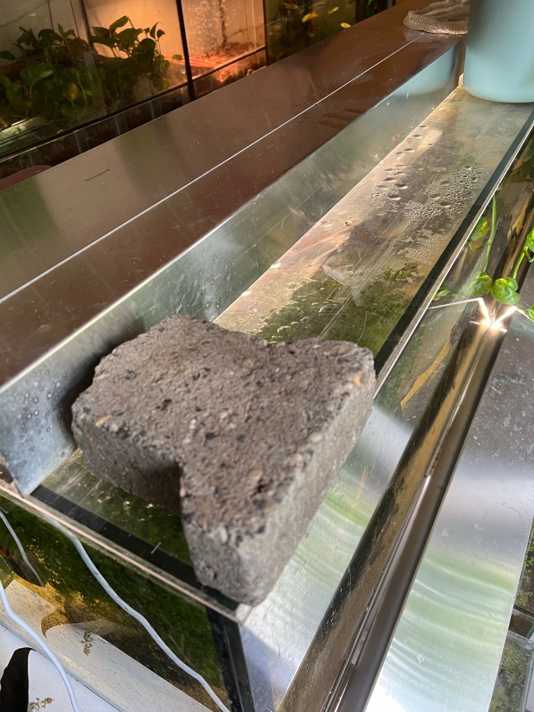 Ich verwende zur Abdeckung 8 mm Plexiglas, in das ich zum Luftaustausch Löcher bohre. An den Ecken beschwere ich die Platten mit Pflastersteinen. Funktioniert! Für die Schläuche wurde eine Ecke abgeschrägt.